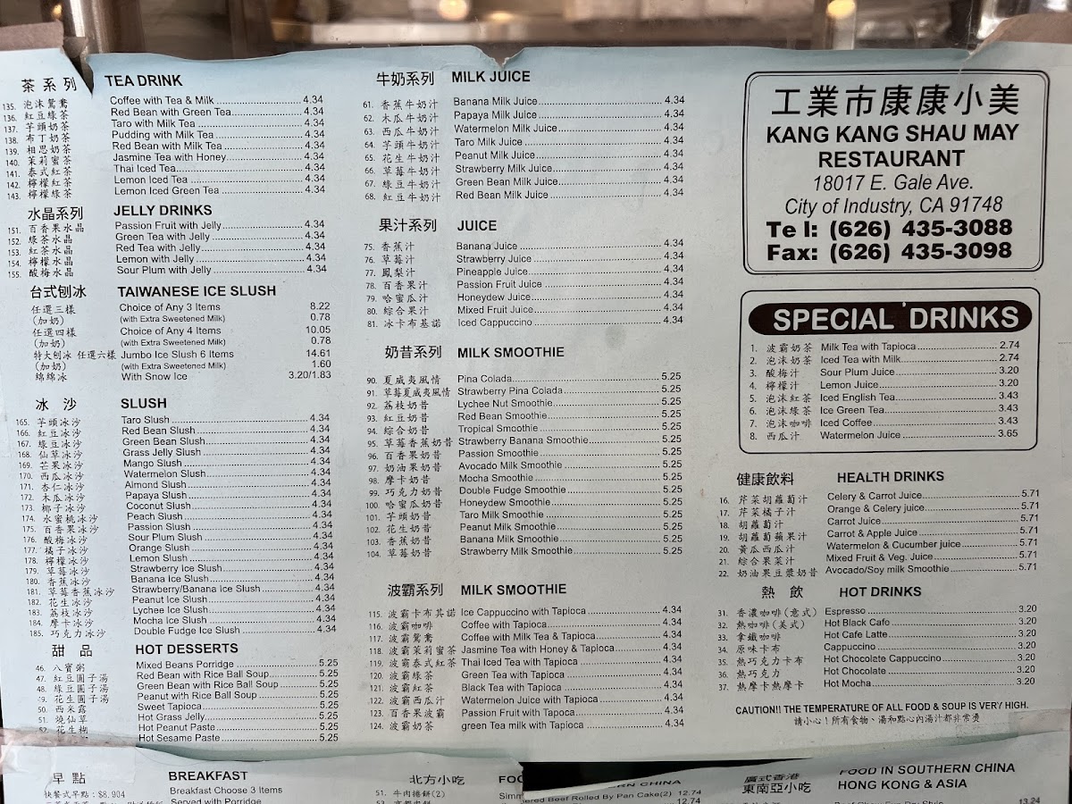 Located in the bustling City of Industry, Kang Kang Shau May Restaurant is a true gem for lovers of authentic Chinese and Taiwanese cuisine. At 18017 Gale Ave, this inviting eatery impresses with its vibrant menu and charming, no-frills dining atmosphere, making it perfect for a casual meal with friends or family.